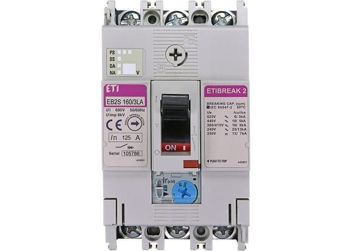 Авт. выключатель EB2S 160/3LA 125A (16kA, (0.63-1)In/фикс.) 3P