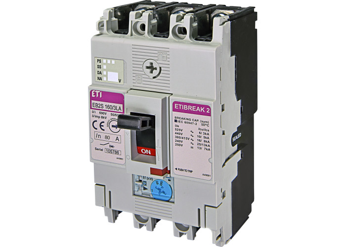 Авт. выключатель EB2S 160/3LA 80A (16kA, (0.63-1)In/фикс.) 3P