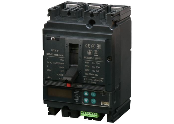 Авт. выключатель NBS-EC 100/3L LCD 100A (36kA, (0.4-1)In/(1.5-12)In) 3P