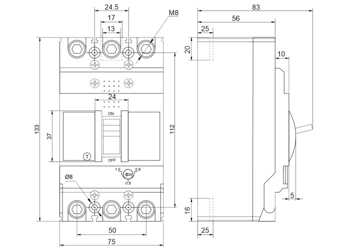Автоматический выключатель с терморегулировкой FMC1S 3P 25A 36kA
