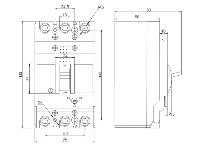 Автоматичні вимикачі з терморегулюванням FMC1S застосовуються на промислових об`єктах, а також в низьковольтному щитовому обладнанні розподілу і захисту від струмів перевантажень, короткого замикання. Особливості: наявність термомагнітного регулювання; можливість регулювання номінального струму (0.8/0.9/1.0*In); можливість самостійного встановлення додаткових пристроїв.