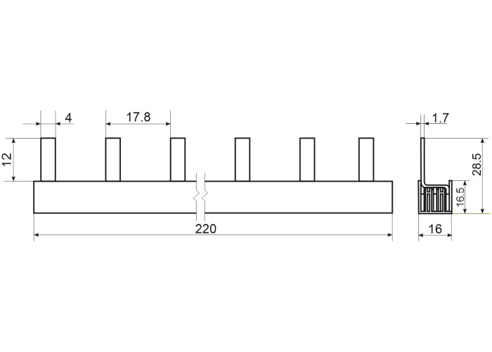 Гребінчата шина з'єднувальна застосовується для полегшення процесу монтажу та з'єднання модульного обладнання, а також сприяє економії місця в розподільчому щиті.