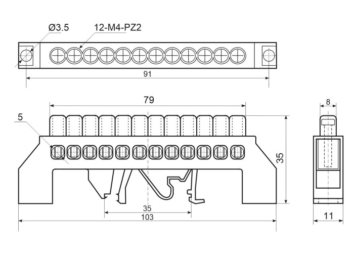 Шина нульова ізольована STF використовується для розгалудженя нульових (N) провідників у щитовому обладнанні. Виріб виготовляється з латуні з додаванням міді, що в свою чергу відмінно позначається для зменшення опору та покращення контакту. Фіксація виконується через корпус, який має ізоляційні властивості та дозволяє виконати встановлення на: панель щита; DIN-рейку. Переваги нульових ізольованих шин: висока якість, простота монтажу, невеликі габарити, довговічність, спрощення ремонтних робіт, підвищення безпеки завдяки обмеженню доступу до струмовідних частин, доступна вартість. Монтажний отвір: 5мм; номінальний струм, In: 63А; перетин провідника, що приєднується,мм.кв:1,5-10; кількість отворів: 4, 6, 8, 10, 12; матеріал: корпус - ПВХ, що не підтримує горіння, шина - латунь з додаванням міді.