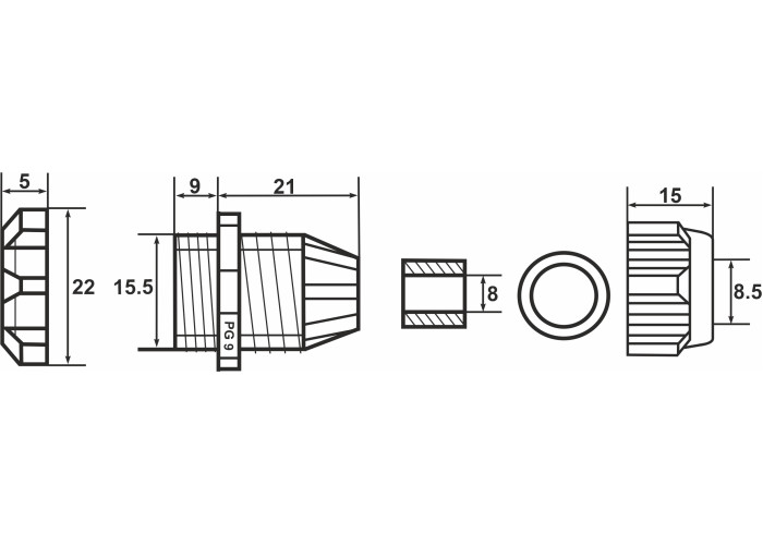 Товар російскою мовою: Кабельный гермоотвод PG-9 IP68