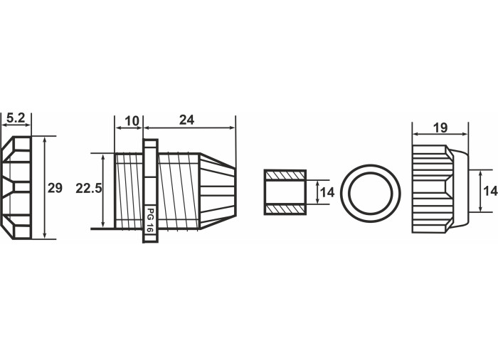 Товар російскою мовою: Кабельный гермоотвод PG-16 IP68