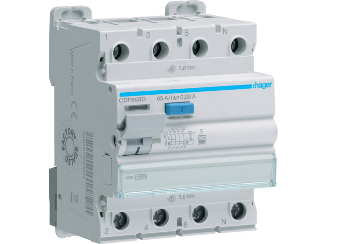 {'Номінальний струм': '63 A', 'Селективний захист': 'ні', 'Короткочасне затримане спрацьовування': 'так', 'З блокувальним пристроєм': 'так', 'Струм короткого замикання Icw': '10 kA', 'Під`єднуваний переріз багатодротового провідника': '1-16 mm²', 'Вибухозахищений': 'ні', 'Кількість полюсів': '4', 'Глибина вбудовування': '70 mm', 'Метод монтажу': 'DIN-рейка', 'Під`єднуваний переріз твердого провідника': '1-25 mm²', 'Номінальна напруга': '400 V', 'Струмова витривалість до ударного струму': '5 kA', 'Номінальна ізоляційна напруга Ui': '500 V', 'Тип напруги': 'Змінний струм', 'Частота': '50 Гц', 'Номінальний струм витоку': '0.03 A', 'Номінальна напруга витримування удару Uimp': '4 kV', 'Ширина в кількості модульних відстаней': '4', 'Ступінь забруднення': '2', 'Ступінь захисту (IP)': 'IP20', 'Температура навколишнього середовища під час роботи': '-25-70 °C', 'Тип витоку струму': 'F', 'Можливе додаткове обладнання': 'так'}