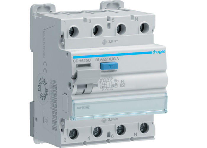 Устройство защитного отключения (УЗО) 4P 10kA 25A 30mA A-Hi