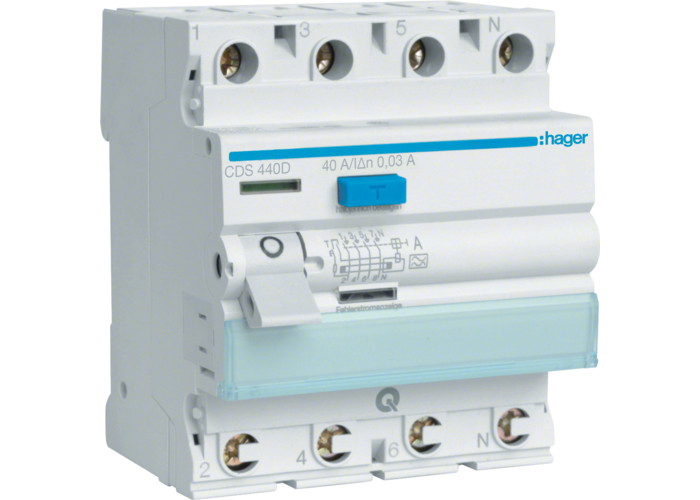 {'Номінальний струм': '40 A', 'Селективний захист': 'ні', 'Короткочасне затримане спрацьовування': 'ні', 'З блокувальним пристроєм': 'так', 'Струм короткого замикання Icw': '6 kA', 'Під`єднуваний переріз багатодротового провідника': '1-16 mm²', 'Вибухозахищений': 'ні', 'Кількість полюсів': '4', 'Глибина вбудовування': '70 mm', 'Метод монтажу': 'DIN-рейка', 'Під`єднуваний переріз твердого провідника': '1-25 mm²', 'Номінальна напруга': '400 V', 'Струмова витривалість до ударного струму': '0.25 kA', 'Номінальна ізоляційна напруга Ui': '500 V', 'Тип напруги': 'Змінний струм', 'Частота': '50 Гц', 'Номінальний струм витоку': '0.03 A', 'Номінальна напруга витримування удару Uimp': '4 kV', 'Ширина в кількості модульних відстаней': '4', 'Ступінь забруднення': '2', 'Ступінь захисту (IP)': 'IP20', 'Температура навколишнього середовища під час роботи': '-25-40 °C', 'Тип витоку струму': 'A', 'Можливе додаткове обладнання': 'так'}