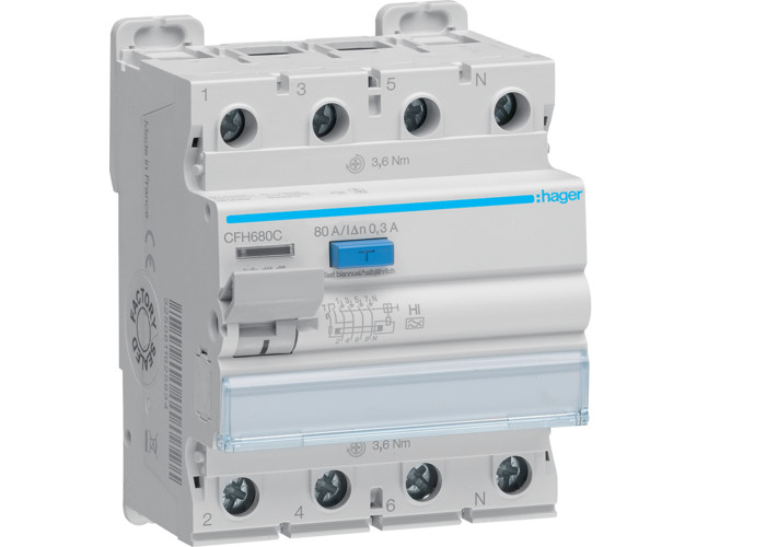 Устройство защитного отключения (УЗО) 4P 10kA 80A 300mA A-Hi