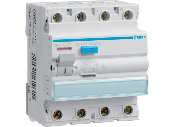 {'Номінальний струм': '63 A', 'Селективний захист': 'так', 'Короткочасне затримане спрацьовування': 'так', 'З блокувальним пристроєм': 'так', 'Струм короткого замикання Icw': '6 kA', 'Під`єднуваний переріз багатодротового провідника': '1-16 mm²', 'Вибухозахищений': 'ні', 'Кількість полюсів': '4', 'Глибина вбудовування': '70 mm', 'Метод монтажу': 'DIN-рейка', 'Під`єднуваний переріз твердого провідника': '1-25 mm²', 'Номінальна напруга': '400 V', 'Струмова витривалість до ударного струму': '5 kA', 'Номінальна ізоляційна напруга Ui': '500 V', 'Тип напруги': 'Змінний струм', 'Частота': '50 Гц', 'Номінальний струм витоку': '0.3 A', 'Номінальна напруга витримування удару Uimp': '4 kV', 'Ширина в кількості модульних відстаней': '4', 'Ступінь забруднення': '2', 'Ступінь захисту (IP)': 'IP20', 'Температура навколишнього середовища під час роботи': '-25-40 °C', 'Тип витоку струму': 'A', 'Можливе додаткове обладнання': 'так'}