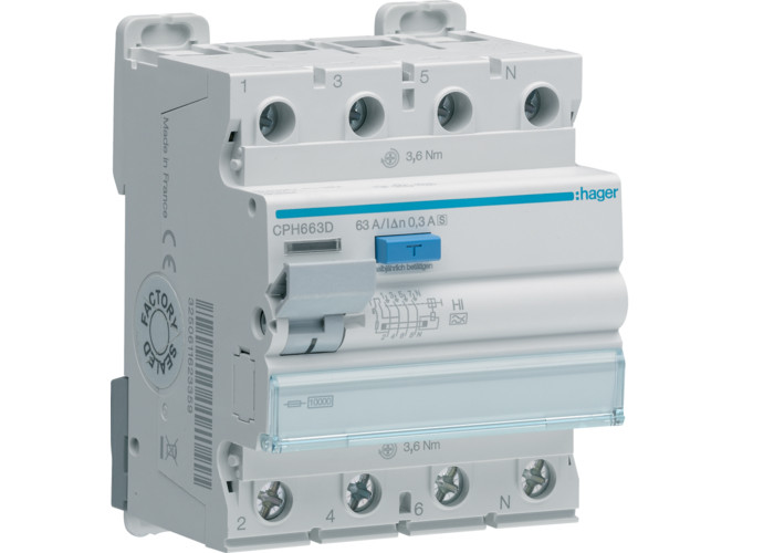 Устройство защитного отключения (УЗО) 4P 10kA 63A 300mA A-Hi S