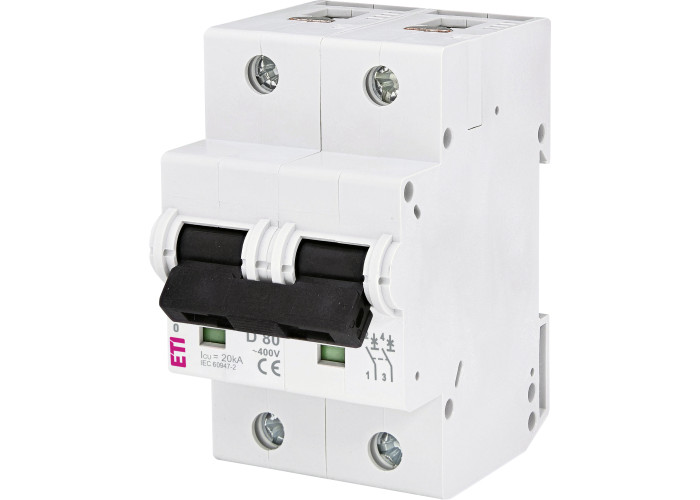 Автоматичний вимикач ETIMAT 10 2р D 80А (20 kA)