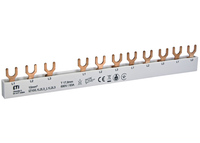 Шина питания IZ 10/L1L2L3_L1L2L3 (10мм2, 3P, 0.21м, Fork, 12mod.)