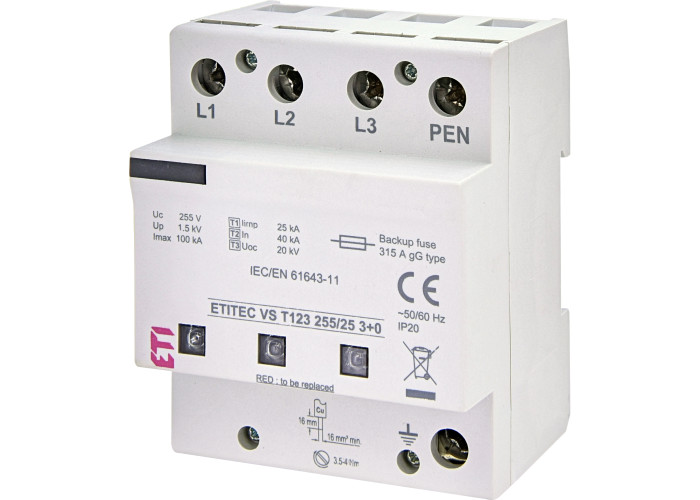 Ограничитель перенапряжения ETITEC VS T123 255/25 (3+0)
