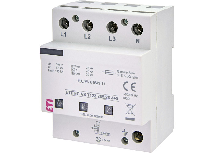 Ограничитель перенапряжения ETITEC VS T123 255/25 (4+0)