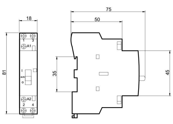 Модульні магнітні пускачі MCF3i призначені для дистанційного кeрування в електричних колах змінного струму частотою 50/60 Hz і напругою до 400V. Використовуються модульні магнітні пускачі MCF3i в побуті для автоматизації та управління процесами, а також у системах вентиляції, освітлення та кондиціонування. Контактор має 4 позиції на вибір: O - постійно вимкненоAUTO - перемикається, коли напруга живлення подається на котушкуI - ввімкнено вручну, автоматично повертається в положення “AUTO” після вимкнення напруги живленняI + P - постійно увімкнено