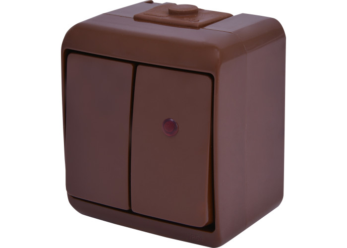 Выключатель 2-клавишный с подсветкой ВГЭ-2Л-КР (коричневый, IP54)