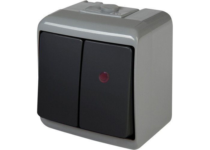 Выключатель 2-клавишный с подсвечниками VHE-2L-SRG (серо-графит., IP54)