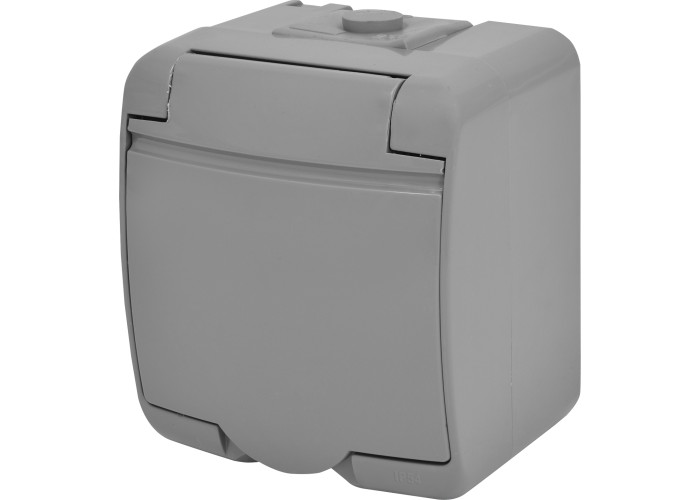 Розетка 1-на с ж/к Schuko RHE-1s-SR (серая/серая крышка, IP54)
