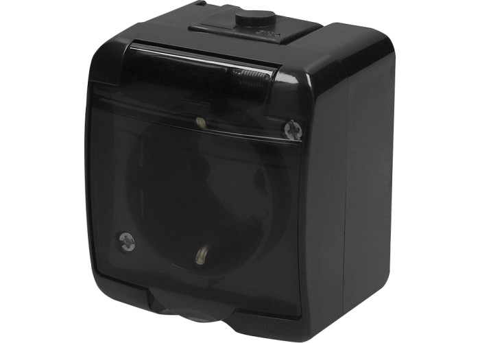 Розетка 1-на с ж/к Schuko RHE-1sd-BL (черная/прозрачная крышка, IP54)