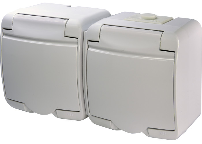 Розетка 2-на с/к Schuko RHE-2s (белая/белая крышка, IP54)