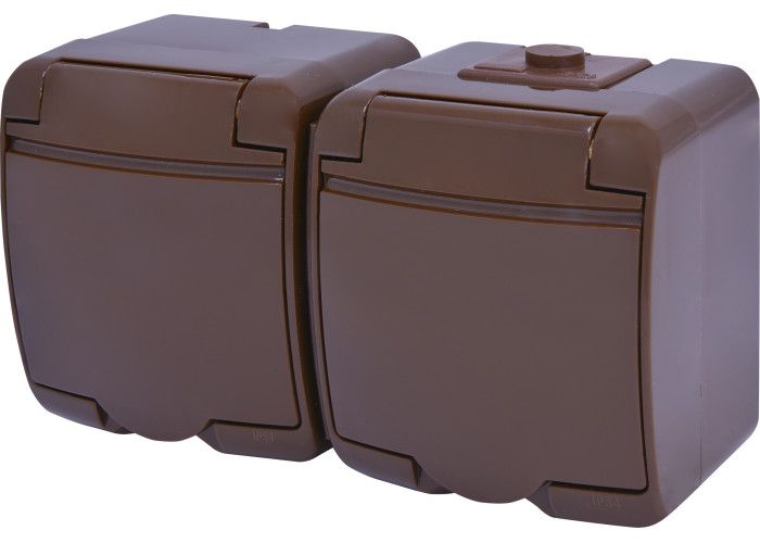 Розетка 2-я с ж/к Schuko RHE-2s-KR (коричневая/коричневая крышка, IP54)