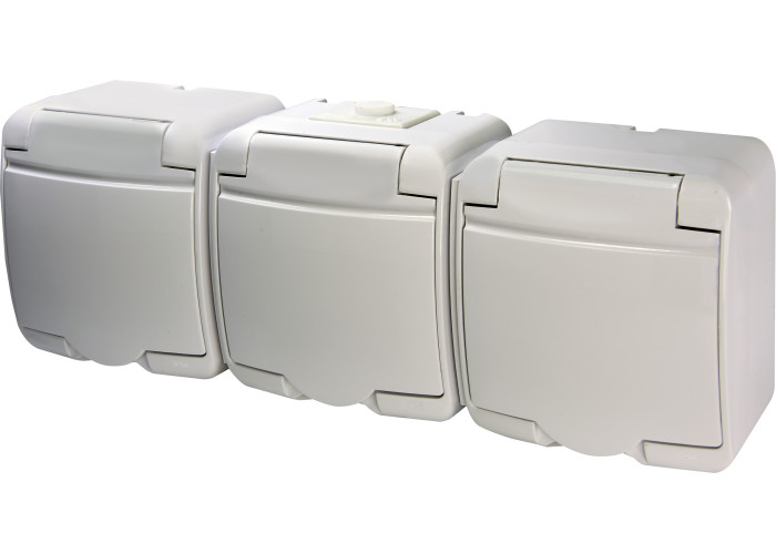 Розетка 3-на с/к Schuko RHE-3s (белая/белая крышка, IP54)