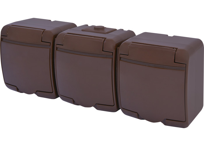 Розетка 3-я с ж/к Schuko RHE-3s-KR (коричневая/коричневая крышка, IP54)