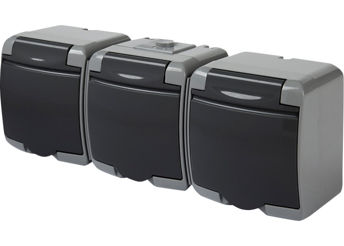 Розетка 3-я с ж/к Schuko RHE-3s-SRG (серая/графит. крышка, IP54)