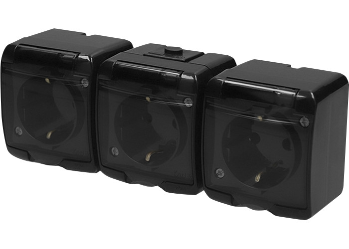 Розетка 3-я с ж/к Schuko RHE-3sd-BL (черная/прозрачная крышка, IP54)