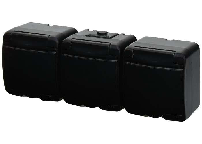 Розетка 3-я с ж/к Schuko RHE-3s-BL (черная/черная крышка, IP54)