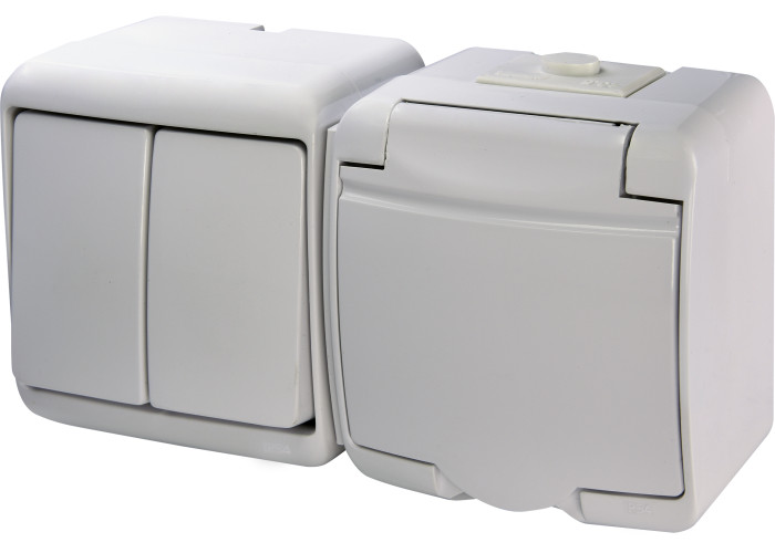 Микс гориз.: 2-кл.изм.+ 1-ная розетка с/к КРС-2с (белая/белая крышка)