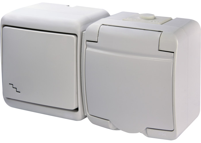 Микс гориз.: Сходов.изм.+ 1-ная розетка с/к КРС-3с (белая/белая крышка)