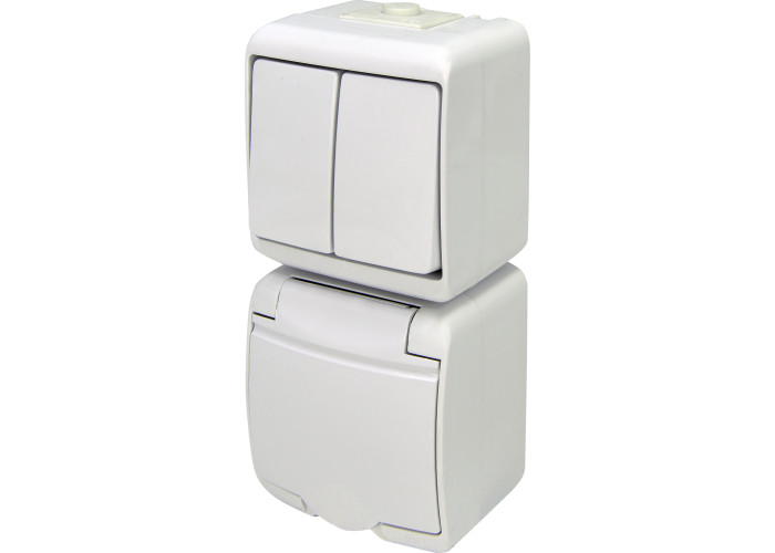 Микс верт.: 2-кл.изм.+ 1-ная розетка с/к КРС-2с (белая/белая крышка)