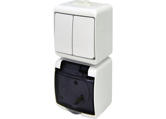 Микс верт.: 2-кл.изм.+ 1-ная розетка с/к КРС-2сд (белая/прозрачная крышка)