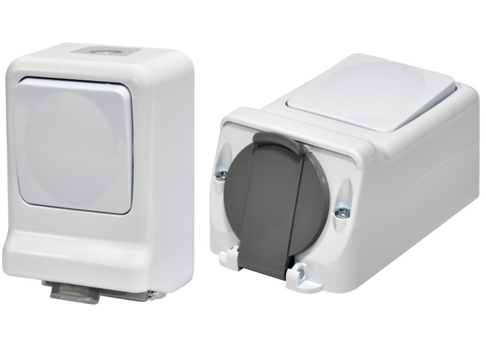 Микс ПРВ-1: 1-кл.изм.+ 1-я розетка (2Р+РЭ, Щуко, IP44, 10/16А, 250В, поликарбонат)