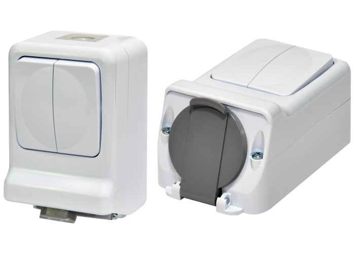 Микс ПРВ-2: 2-кл.изм.+ 1-я розетка (2Р+РЭ, Щуко, IP44, 10/16А, 250В, поликарбонат)