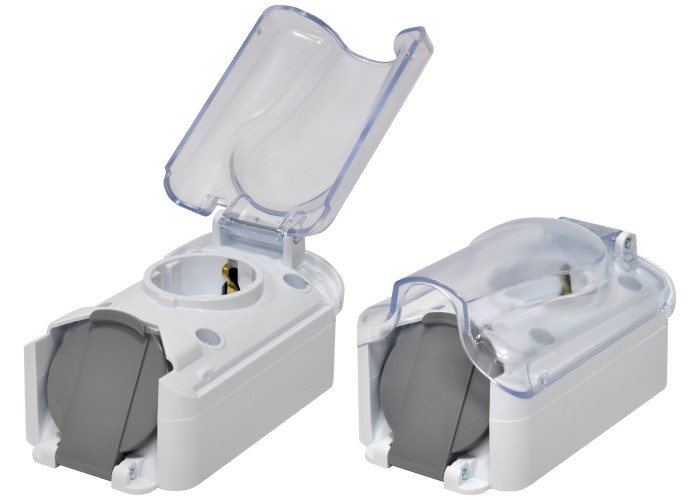 Розетка 2-на з кришк. PRE-2PC для вилки PKB-90 (2x2Р+РЕ, Schuko, IP44, 16A, 250V, полікарбонат)