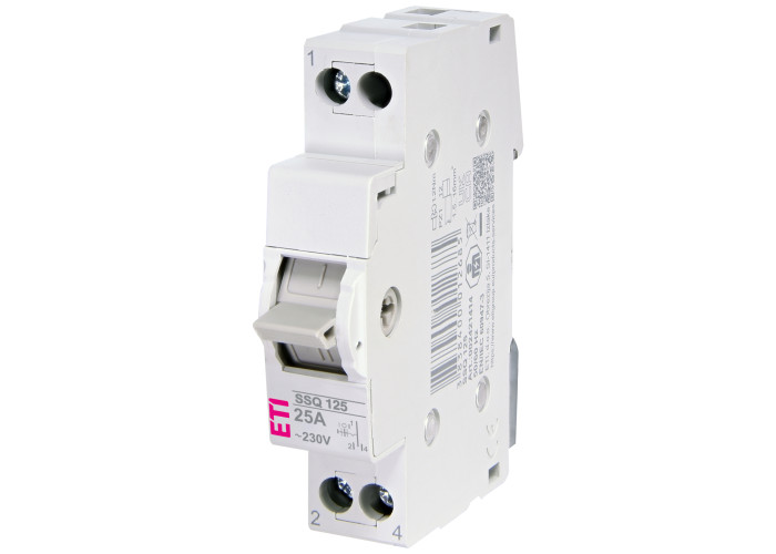 Модульний перемикач навантаження SSQ I-0-II (мережа-генератор) забезпечує просте та надійне перемикання джерел живлення у разі аварійних ситуацій (наприклад, відключення електроенергії). Він призначений для встановлення у розподільні щити. Такий рубильник не має теплового та електромагнітного розчіплювача (не захищають від струмів короткого замикання та перевантажень). Можливе пломбування у положенні (I) та (II).