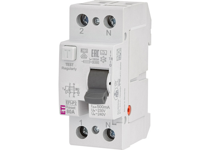 Дифференциальное реле (УЗО) 2р EFI-P2R 80/0,5 тип A (10кА) (СБРОС)