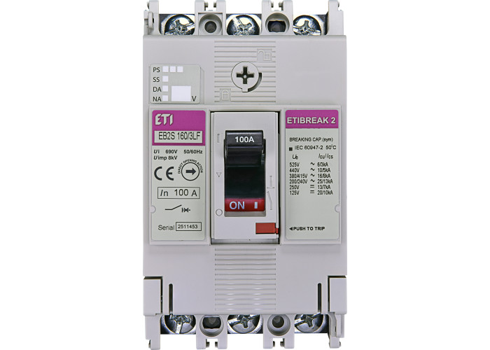 Авт. вимикач EB2S 160/3LF 100A (16kA, фікс./фікс.) 3P