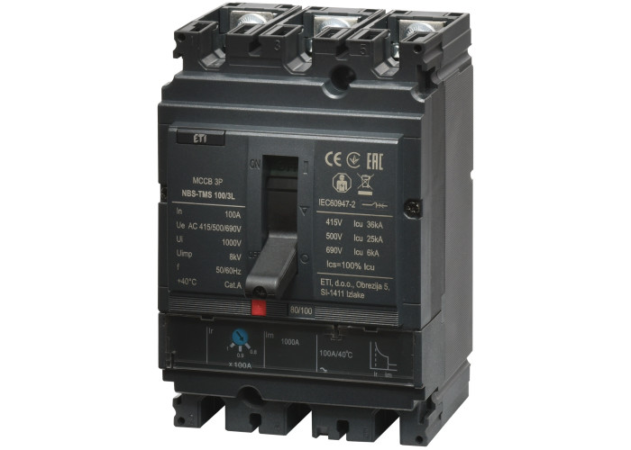 Авт. вимикач NBS-TMS 100/3L 100A (36kA, (0.8-1)In/фікс.) 3P