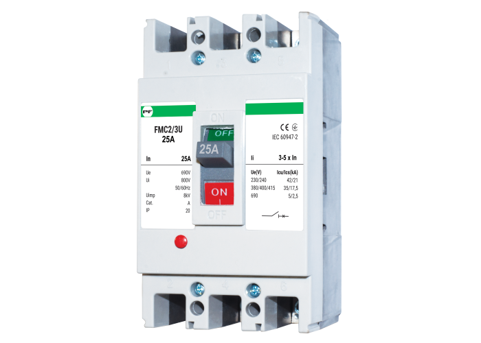 Автоматические выключатели FMC - коммутационные устройства, предназначенные для защиты электрических сетей от длительных перегрузок и токов короткого замыкания (сверхтоков). Могут использоваться для оперативного включения и отключения участков электрических сетей переменного тока частотой 50/60Hz напряжением до 690V.