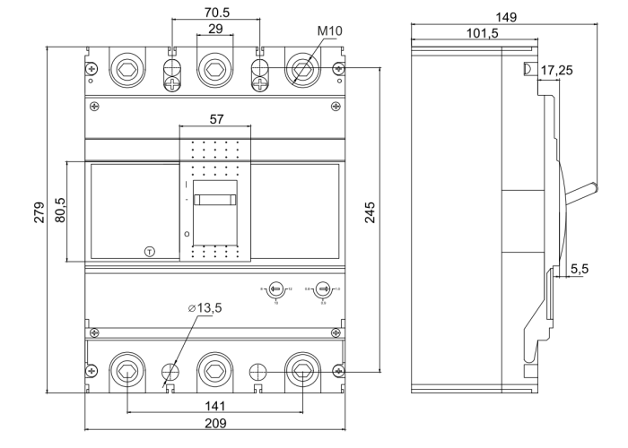 Автоматические выключатели с термомагнитной регулировкой FMC5Sи применяются на промышленных объектах, а также в низковольтном щитовом оборудовании распределения и защиты от токов перегрузок, короткого замыкания. Особенности: наличие термомагнитной регулировки; возможность регулировки номинального тока по тепловой защите (0.8/0.9/1.0*In); возможность регулировки номинального тока по электромагнитной защите (8/10/12*In); возможность самостоятельной установки; дополнительных устройств.