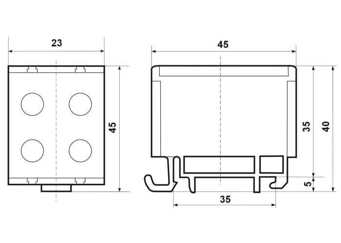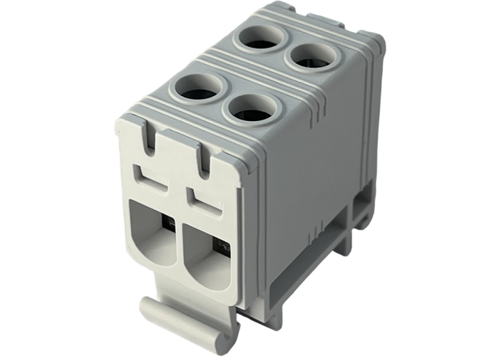Клеммы FT 2Р предназначены для создания электрических соединений и подключения проводов и кабелей датчиков, исполнительных устройств, контрольно-измерительных приборов и компонентов силовой электроники, заземления. Монтируются в электрощитках и панелях управления электрооборудованием. Внутри клеммы полюса электрически соединены между собой. Корпус отдельных элементов имеет разный цвет, что соответствует цветовой маркировке проводов: серый или коричневый – фаза; синий – нейтраль; желто-зеленый – заземление. Особенностью данных клемм является возможность перехода с алюминиевого на медный проводник.