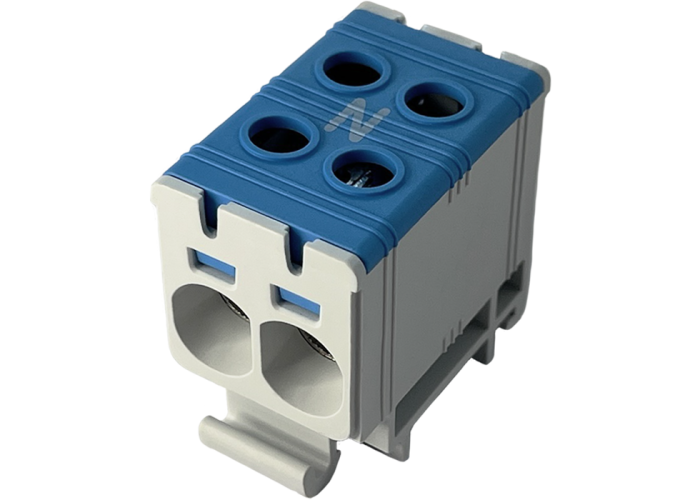 Клеммы FT 2Р предназначены для создания электрических соединений и подключения проводов и кабелей датчиков, исполнительных устройств, контрольно-измерительных приборов и компонентов силовой электроники, заземления. Монтируются в электрощитках и панелях управления электрооборудованием. Внутри клеммы полюса электрически соединены между собой. Корпус отдельных элементов имеет разный цвет, что соответствует цветовой маркировке проводов: серый или коричневый – фаза; синий – нейтраль; желто-зеленый – заземление. Особенностью данных клемм является возможность перехода с алюминиевого на медный проводник.