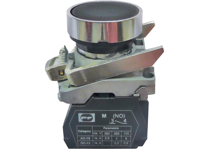 Выключатель кнопочный FP тайный нажимной толкатель, без фиксации. Цвет: черный. Используется в промышленных распределительных устройствах, пультах управления промышленным оборудованием, а также для управления технологическими процессами и системах автоматизации.