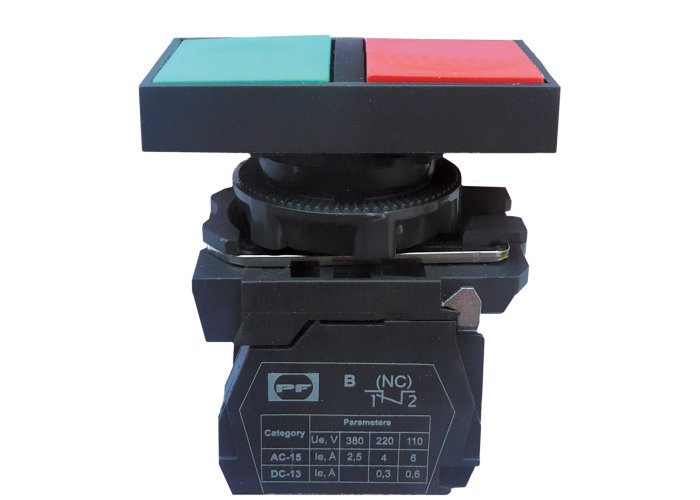 Вимикач кнопковий пластиковий FP5-AW8325230 1NO 1NC (зел-червон)