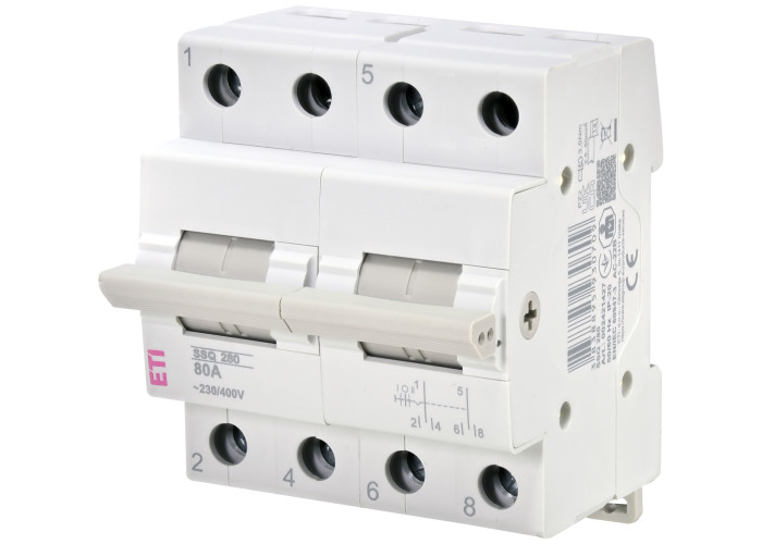 Модульный переключатель нагрузки SSQ I-0-II (сеть-генератор) обеспечивает простое и надежное переключение источников питания при аварийных ситуациях (например, отключение электроэнергии). Он предназначен для установки в распределительные щиты. Такой рубильник не имеет теплового и электромагнитного расцепителя (не защищают от токов короткого замыкания и перегрузок). Возможна пломбировка в положении (I) и (II).
