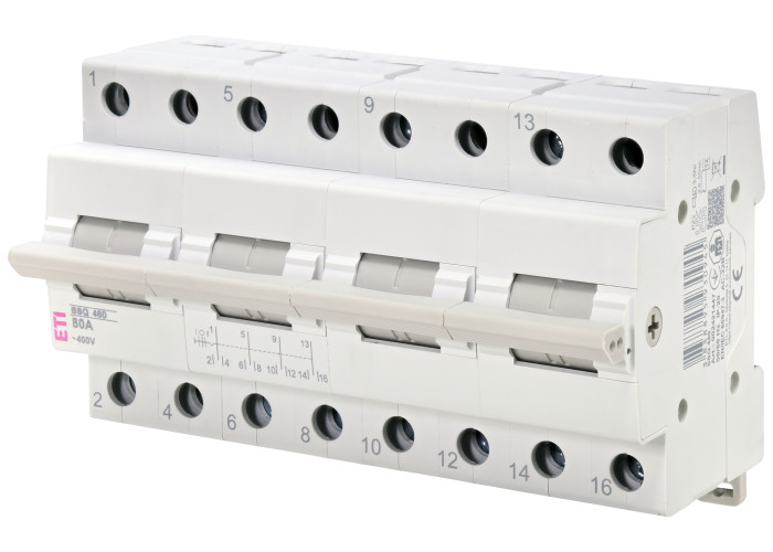 Модульный переключатель нагрузки SSQ I-0-II (сеть-генератор) обеспечивает простое и надежное переключение источников питания при аварийных ситуациях (например, отключение электроэнергии). Он предназначен для установки в распределительные щиты. Такой рубильник не имеет теплового и электромагнитного расцепителя (не защищают от токов короткого замыкания и перегрузок). Возможна пломбировка в положении (I) и (II).